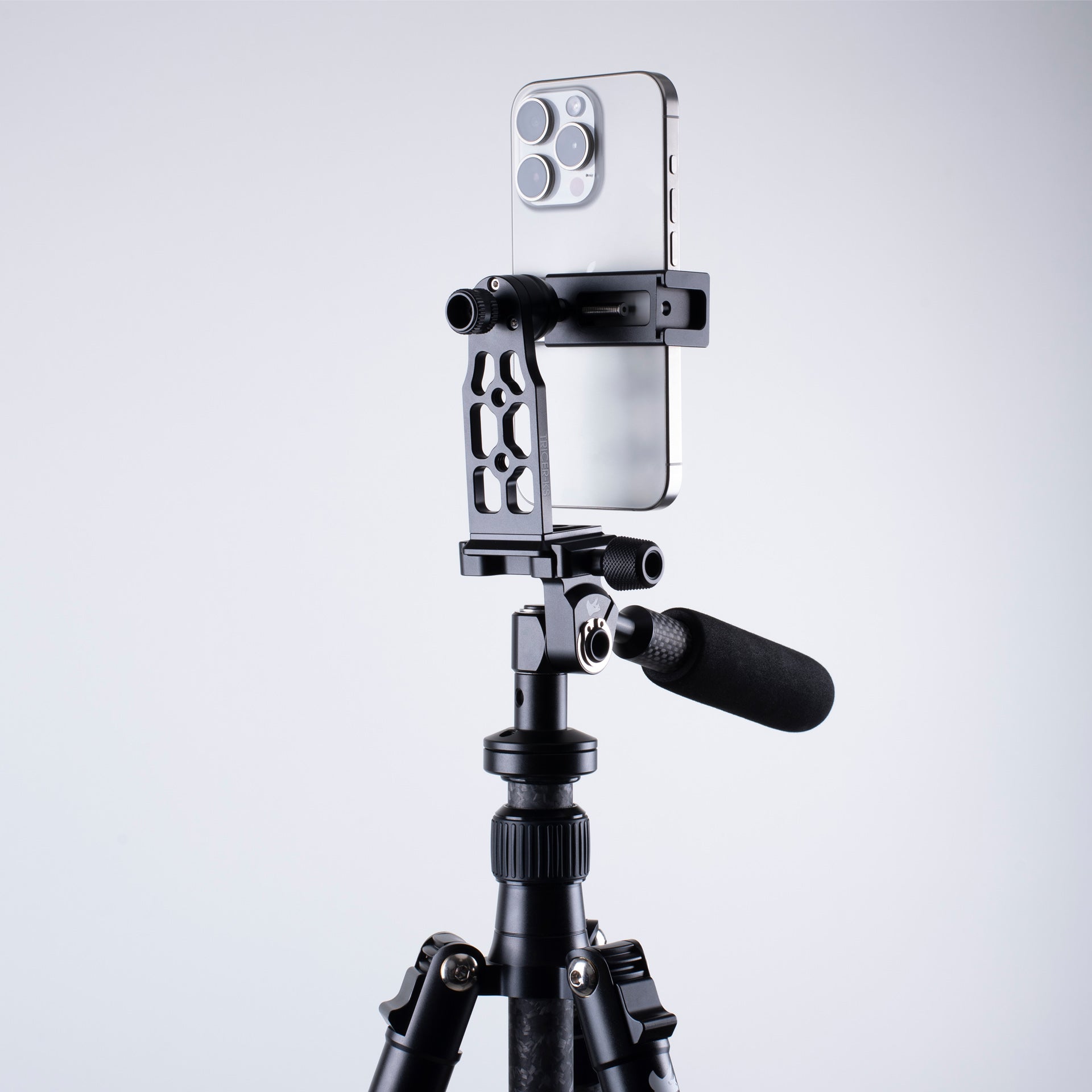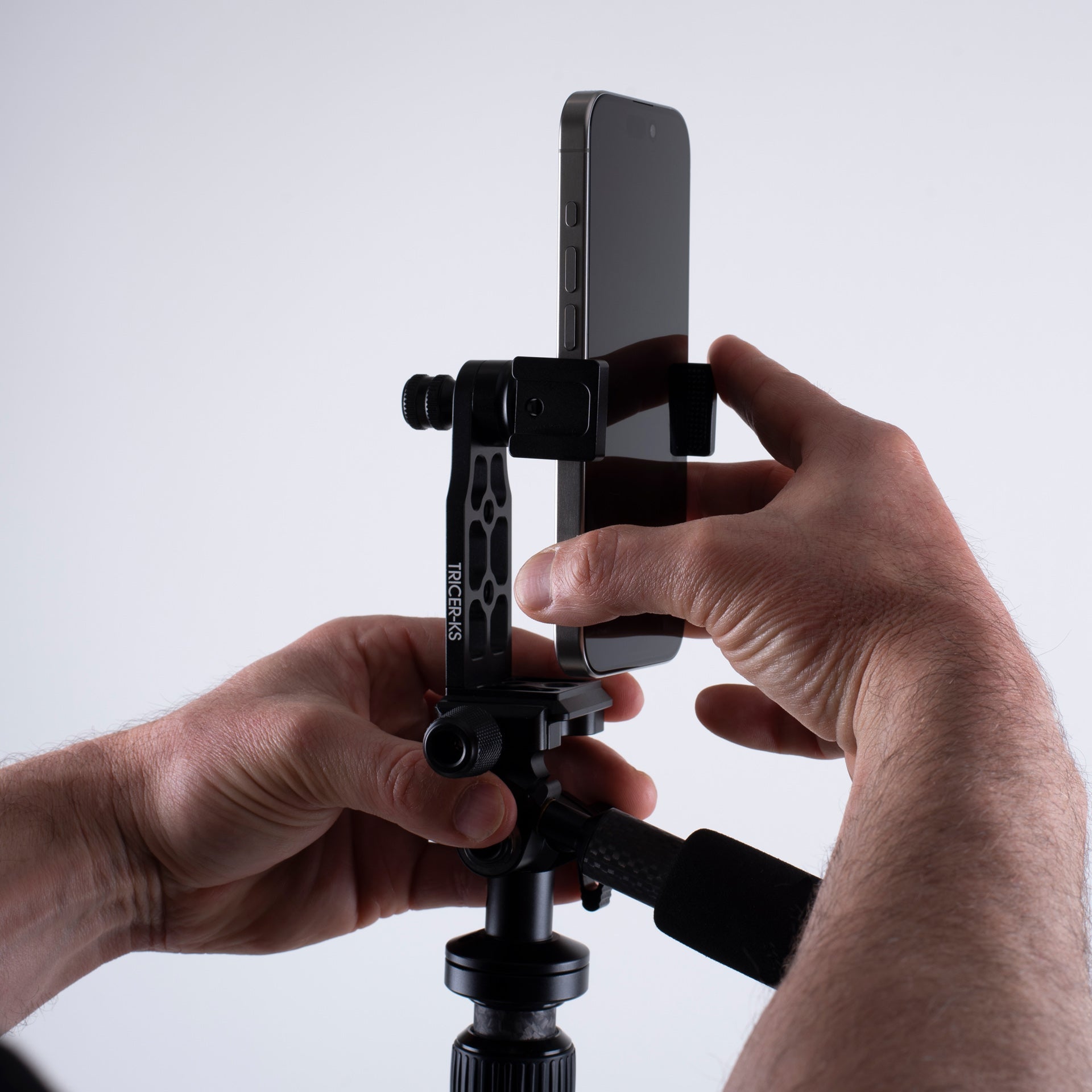 Machined with Arca Swiss, 1/4-20 and 3/8-16, the KS will adapt to any tripod on the market. When you want to get the perfect picture, the Tricer-KS is your go to phone holding solution.