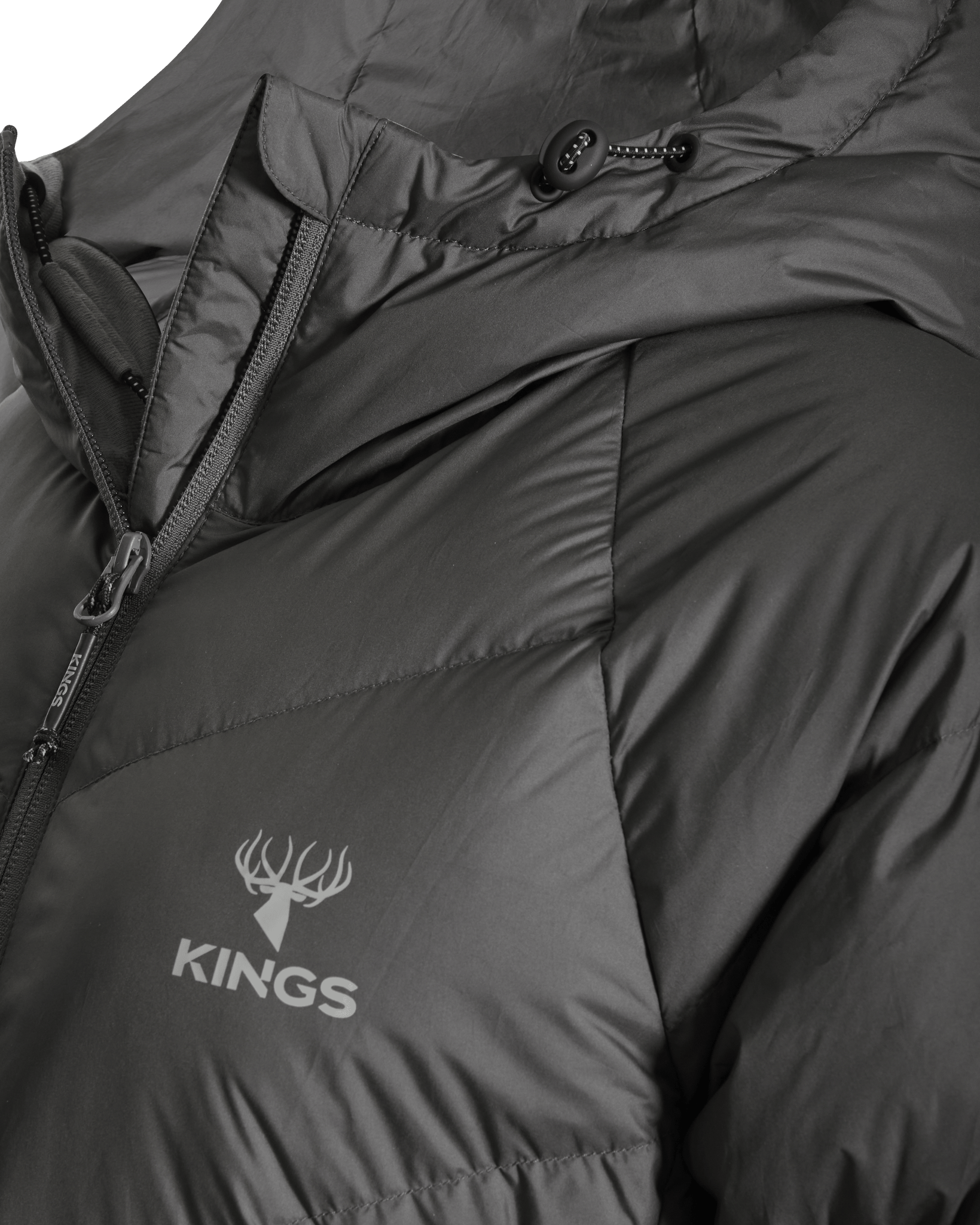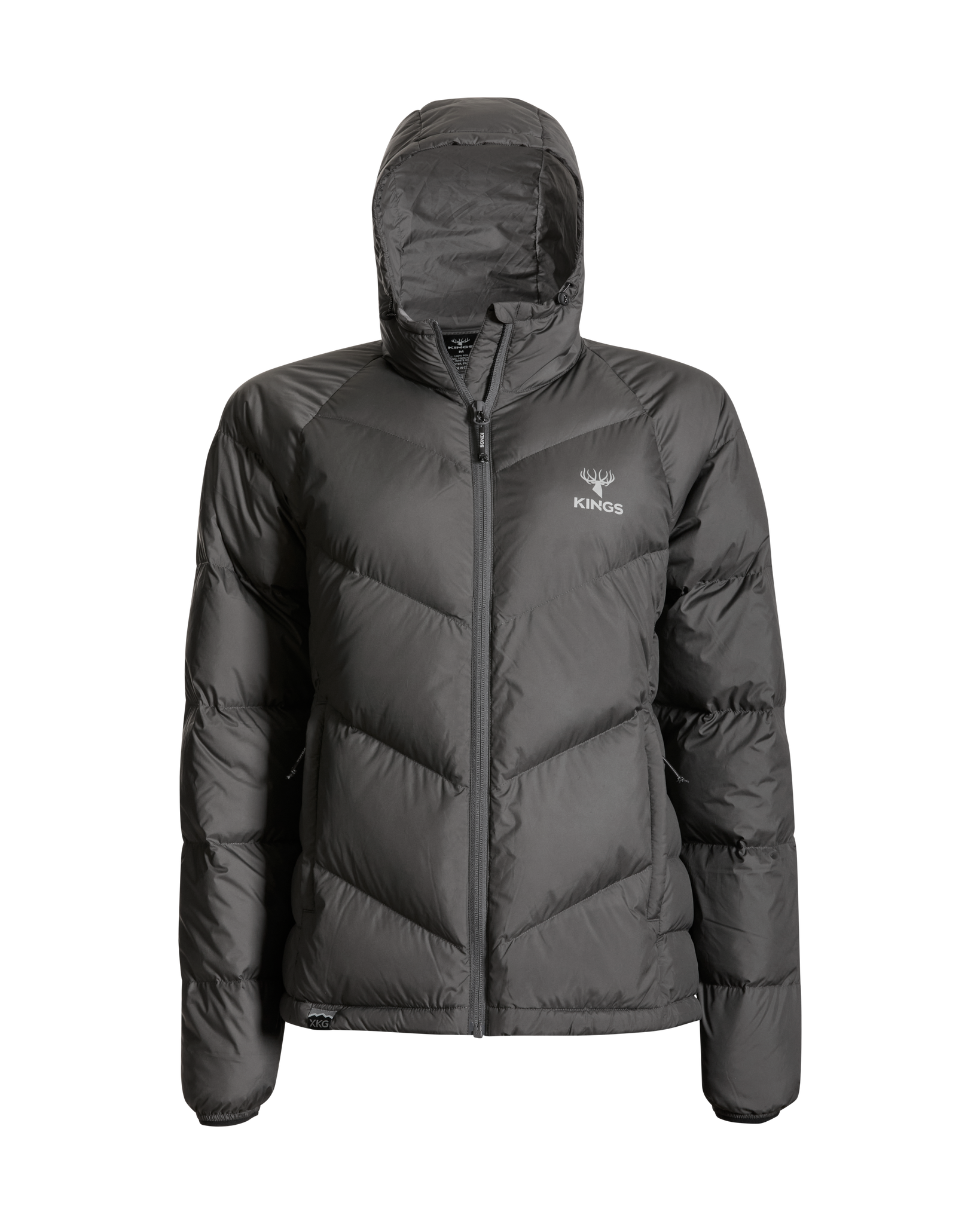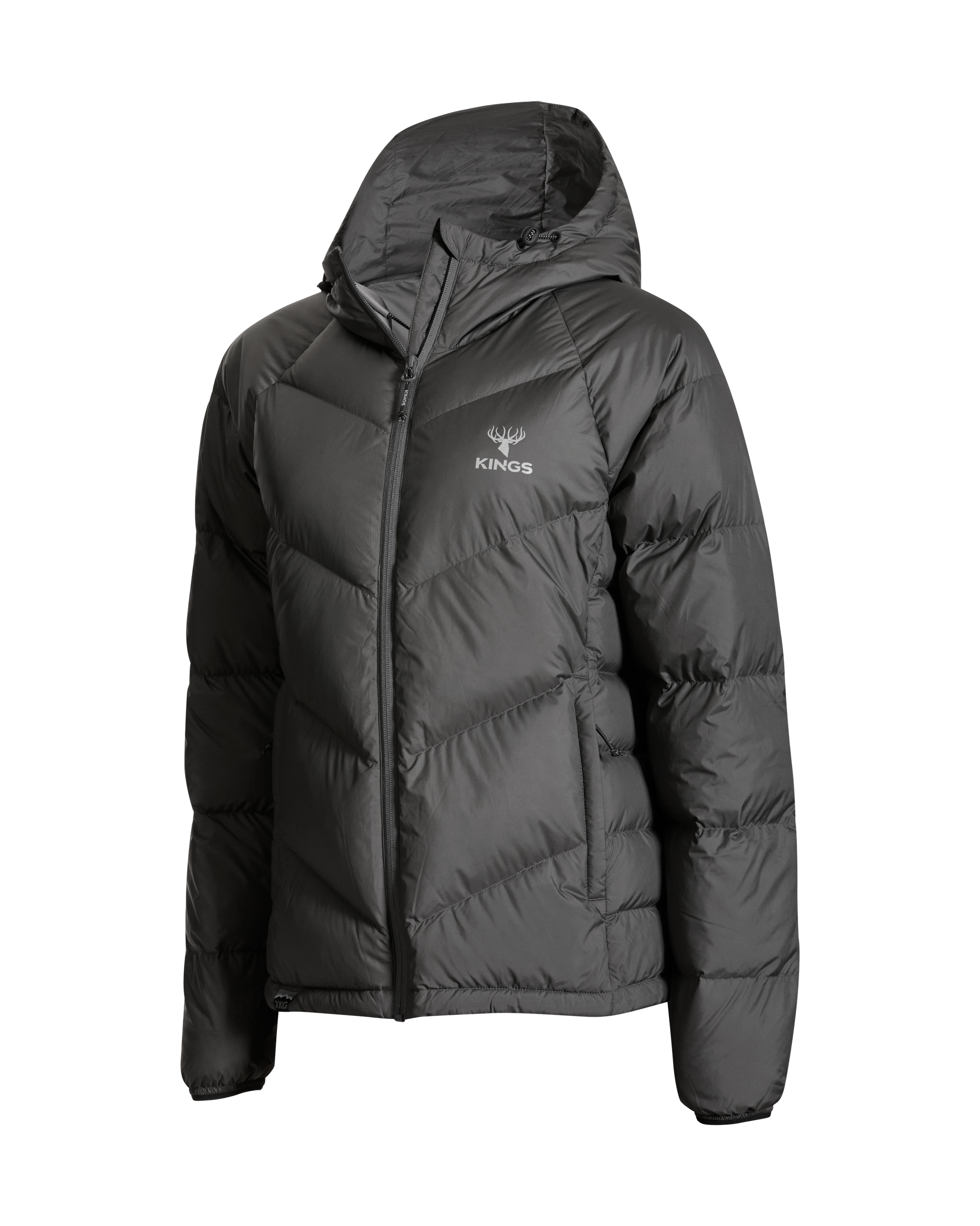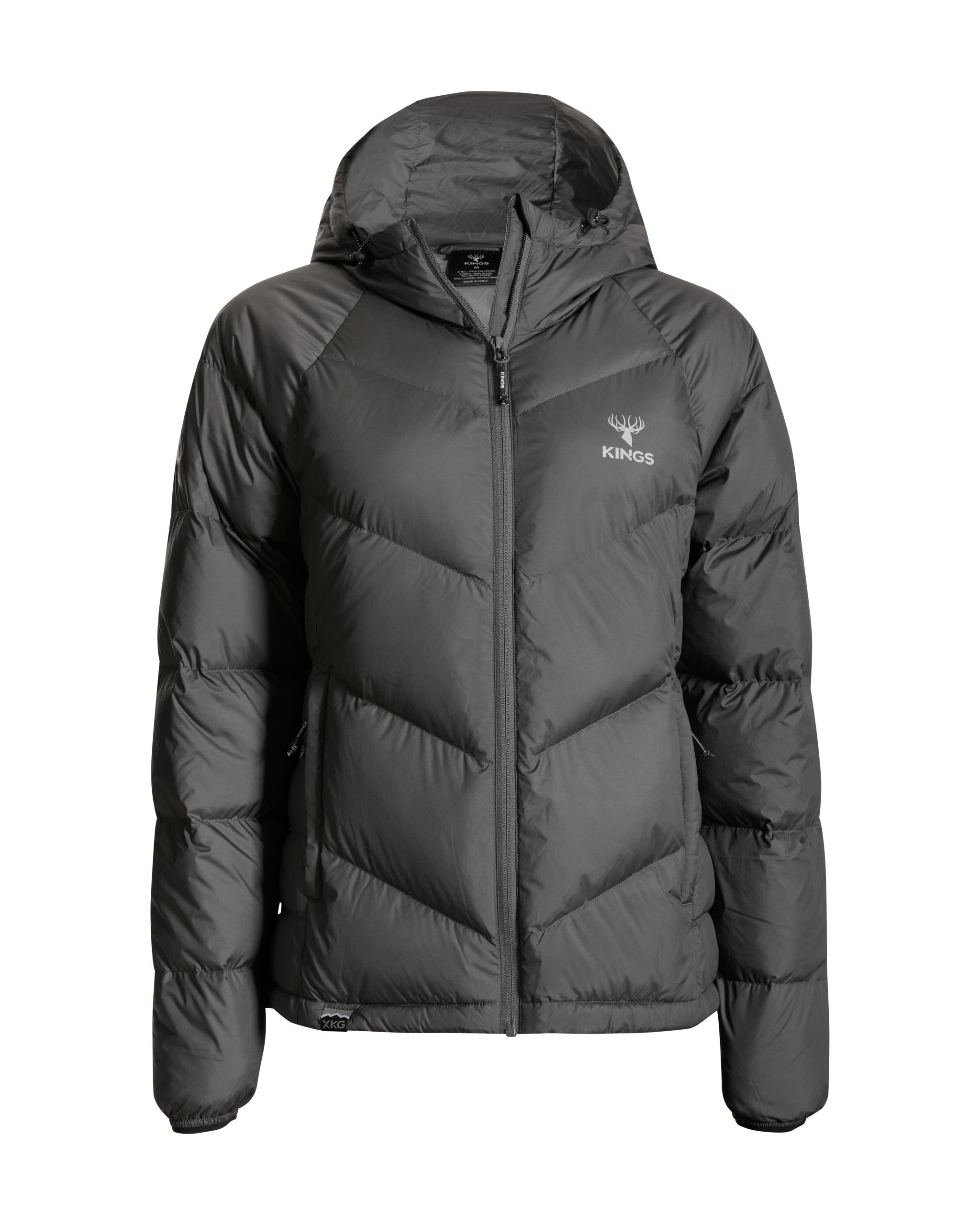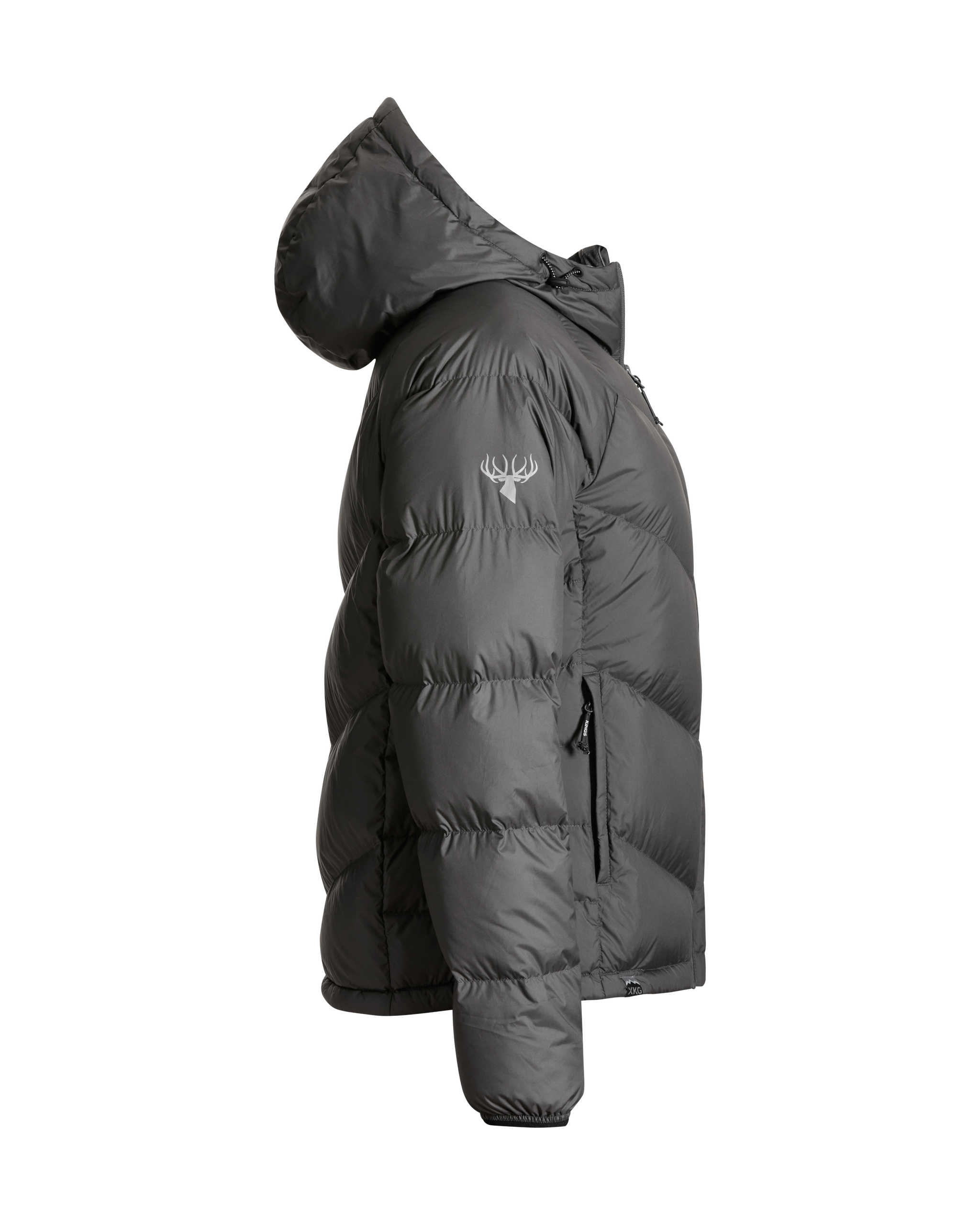 We’ve also added lightweight windproof polyester outer fabric along with a DWR finish to protect you even more when the conditions are extreme. This jacket packs into its left side pocket for easy storage. It has drawstring adjustments in the waist and hood to lock in heat more efficiently. Finished with XKG and Kings logoing on the pull tabs, chest and shoulders. This jacket will thrive during long glassing sessions, testing days in the tree stand, and sleeping or lounging around camp.
